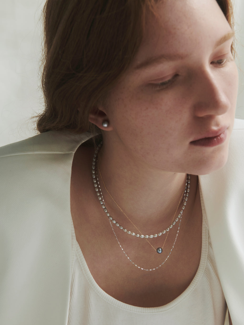 擁有深邃炭灰光澤的淡水珍珠項鍊